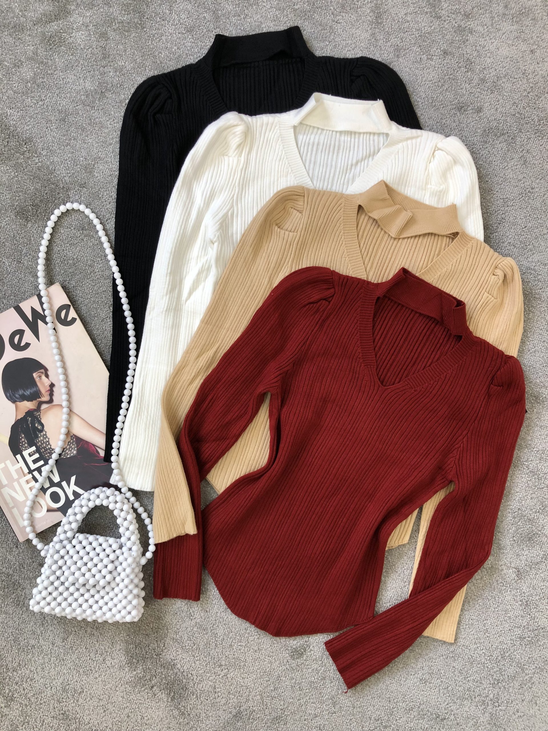بافت وارداتی استین پف یقه هفت گردنی (3694)