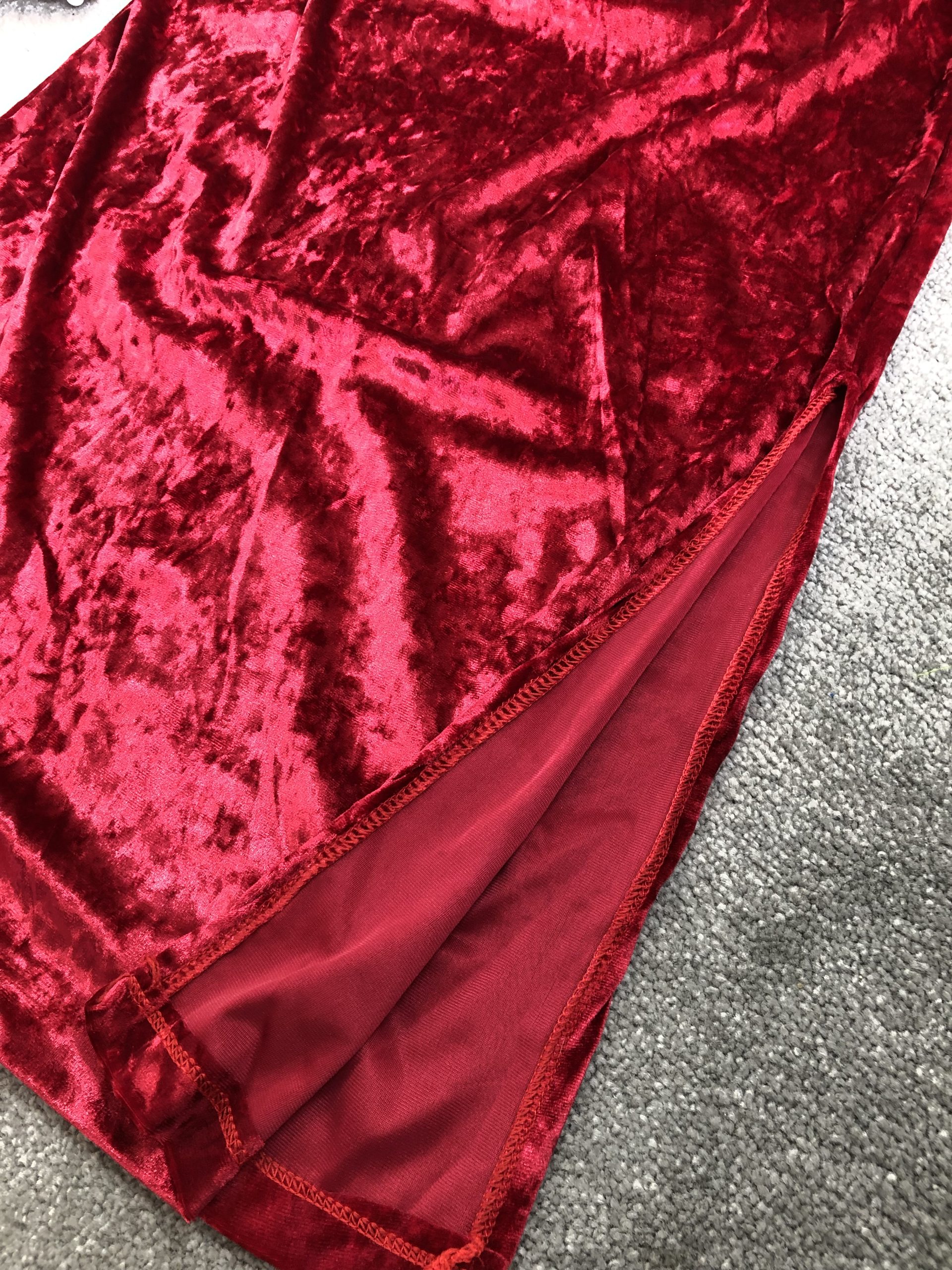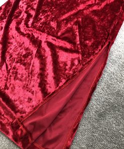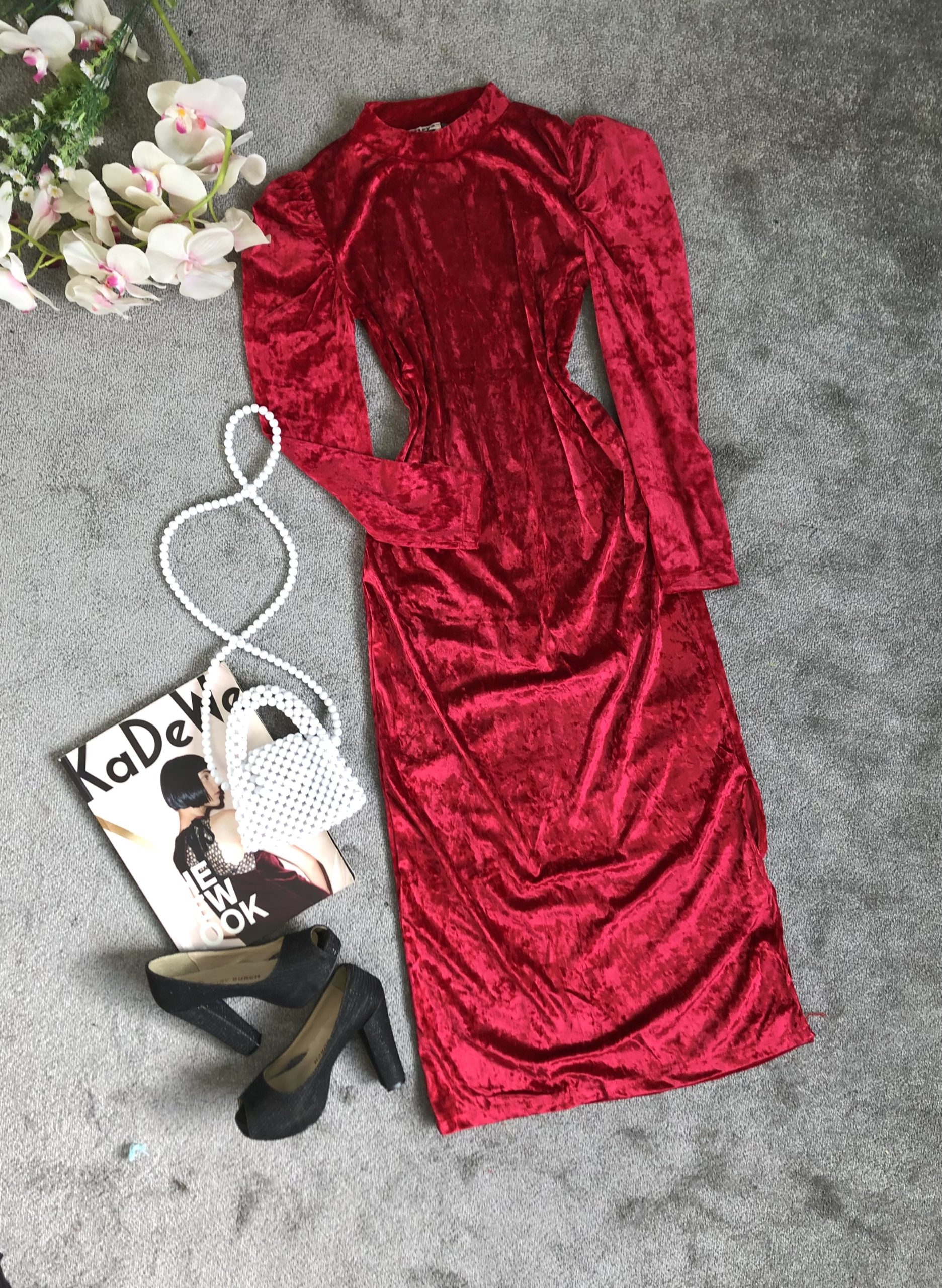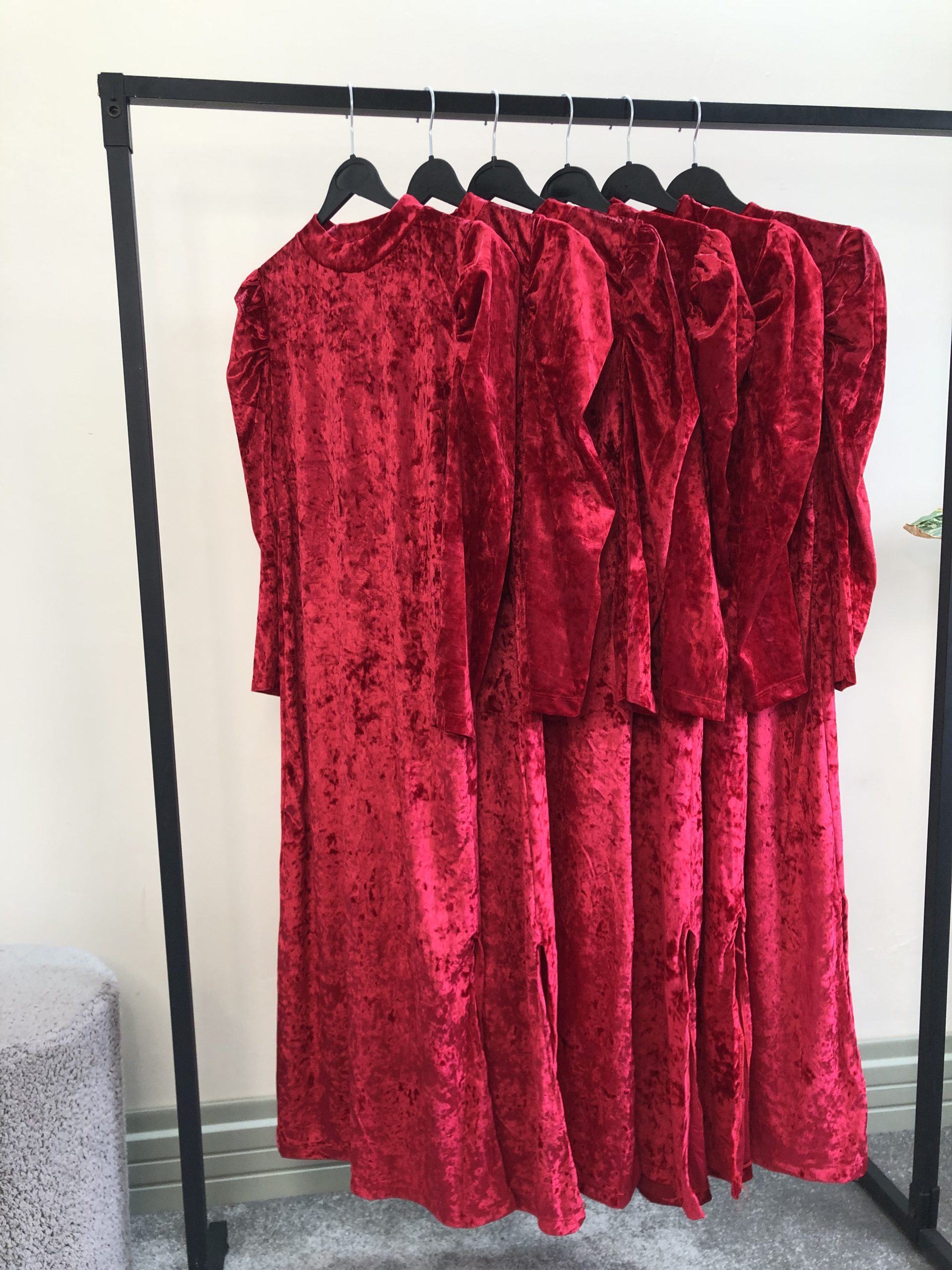 سارافون مخمل قرمز بلند یقه ایستاده (2881)
