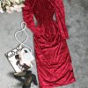 سارافون مخمل قرمز کوتاه چاکدار (2882)