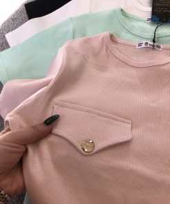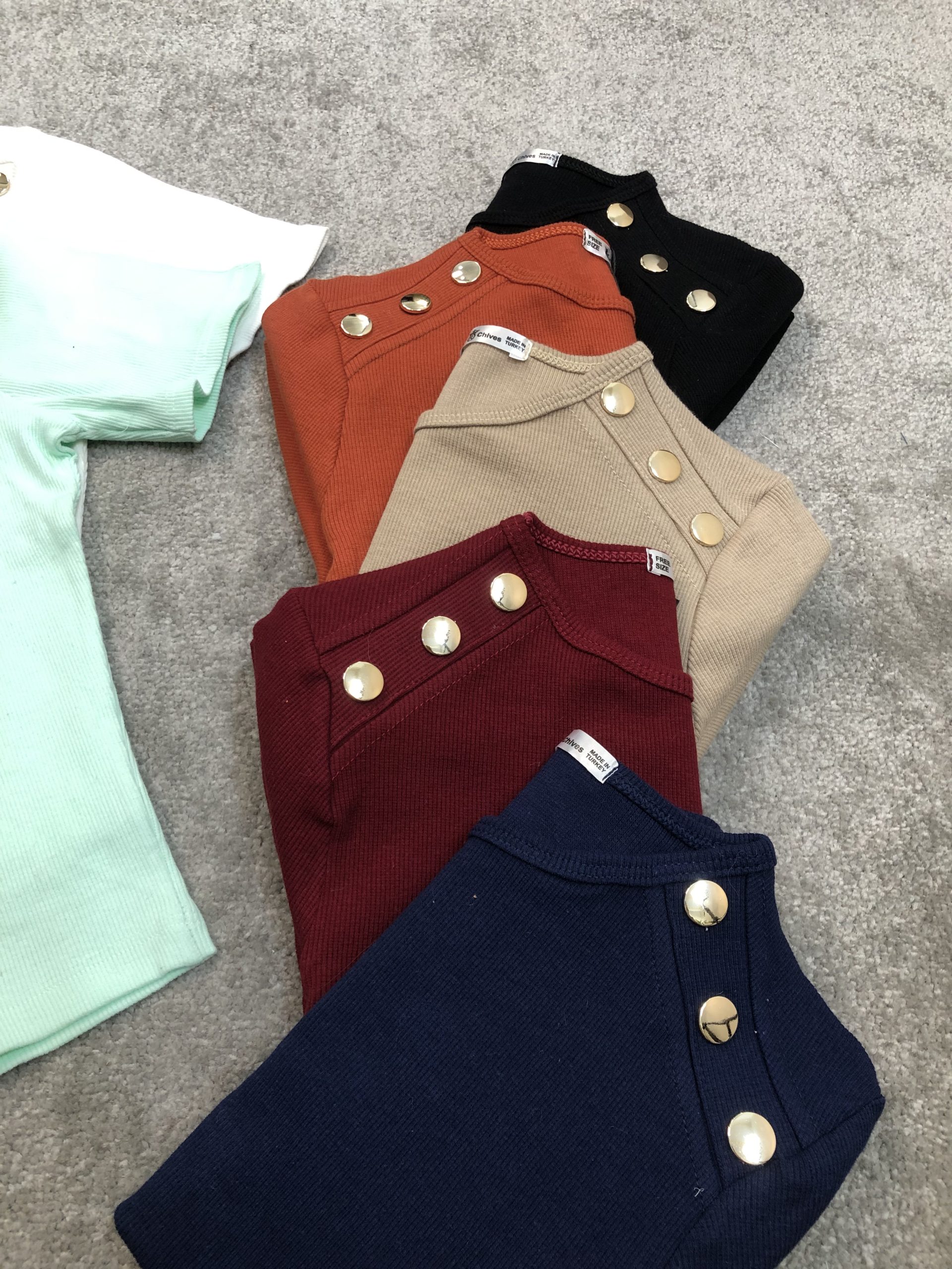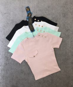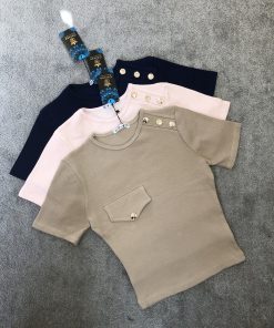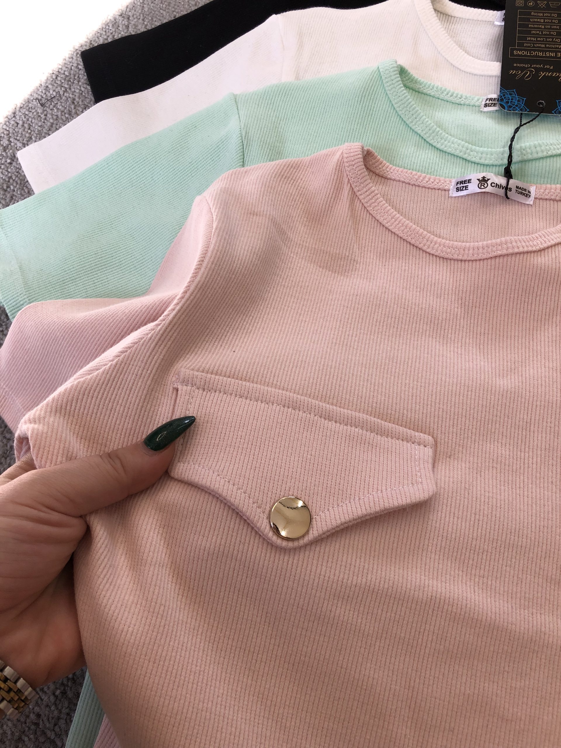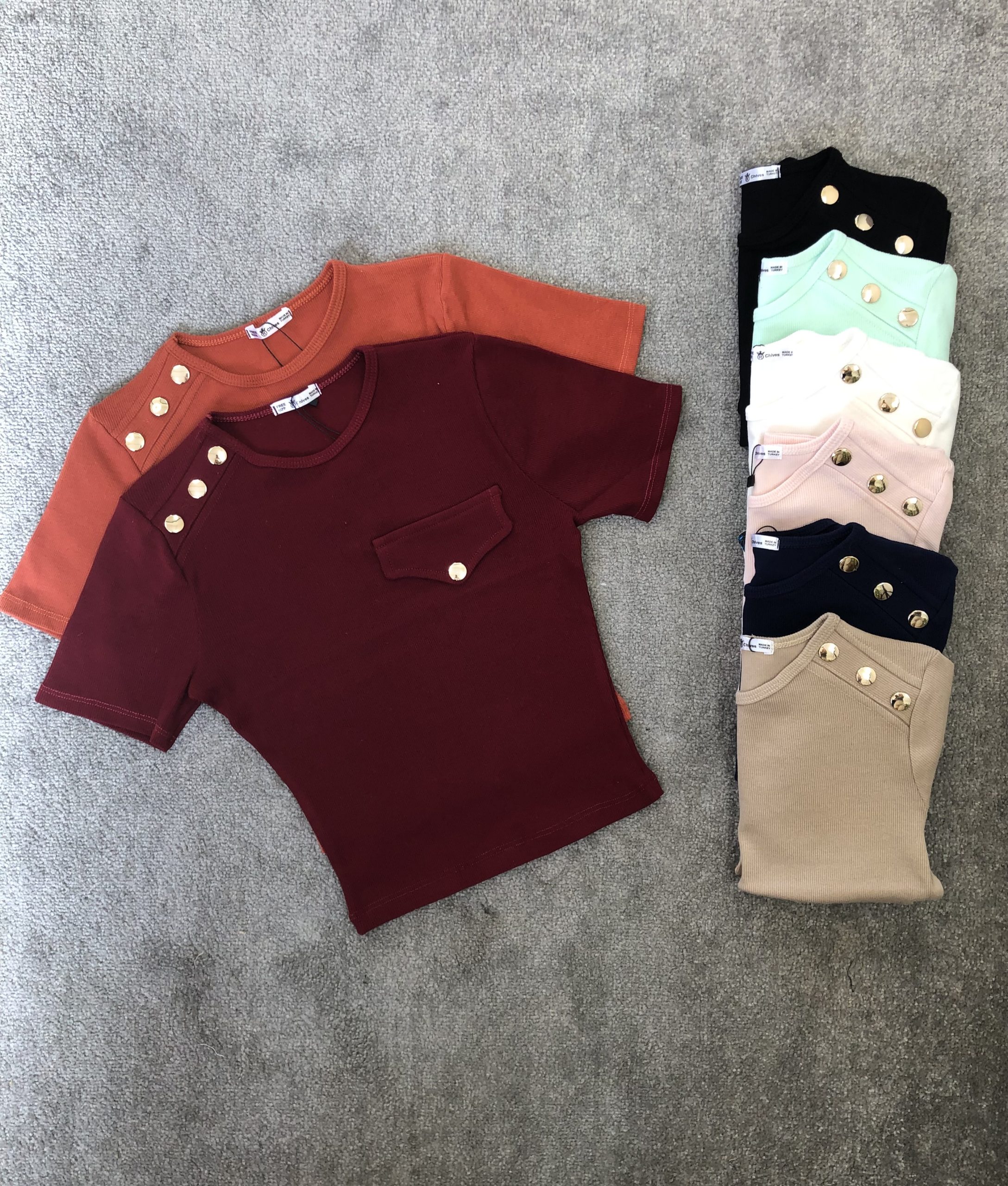 کراپ تیشرتی تک جیب سرشانه دکمه(3737)