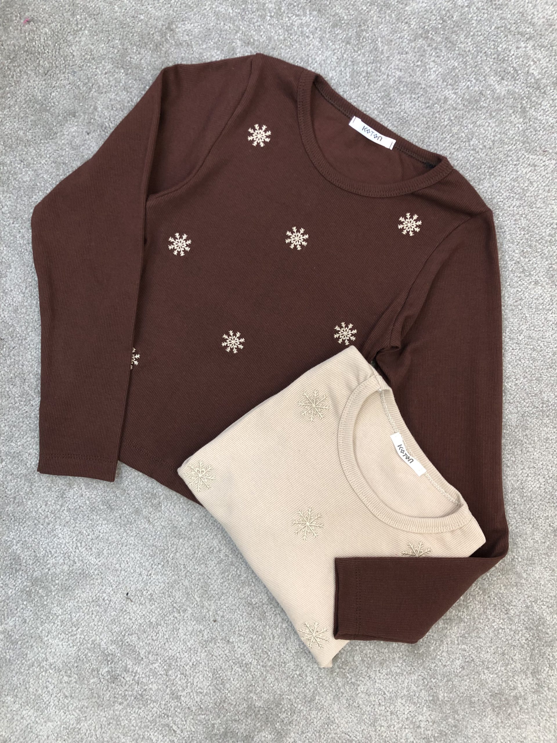 کراپ تیشرت گلدوزی دونه برفی(3707)