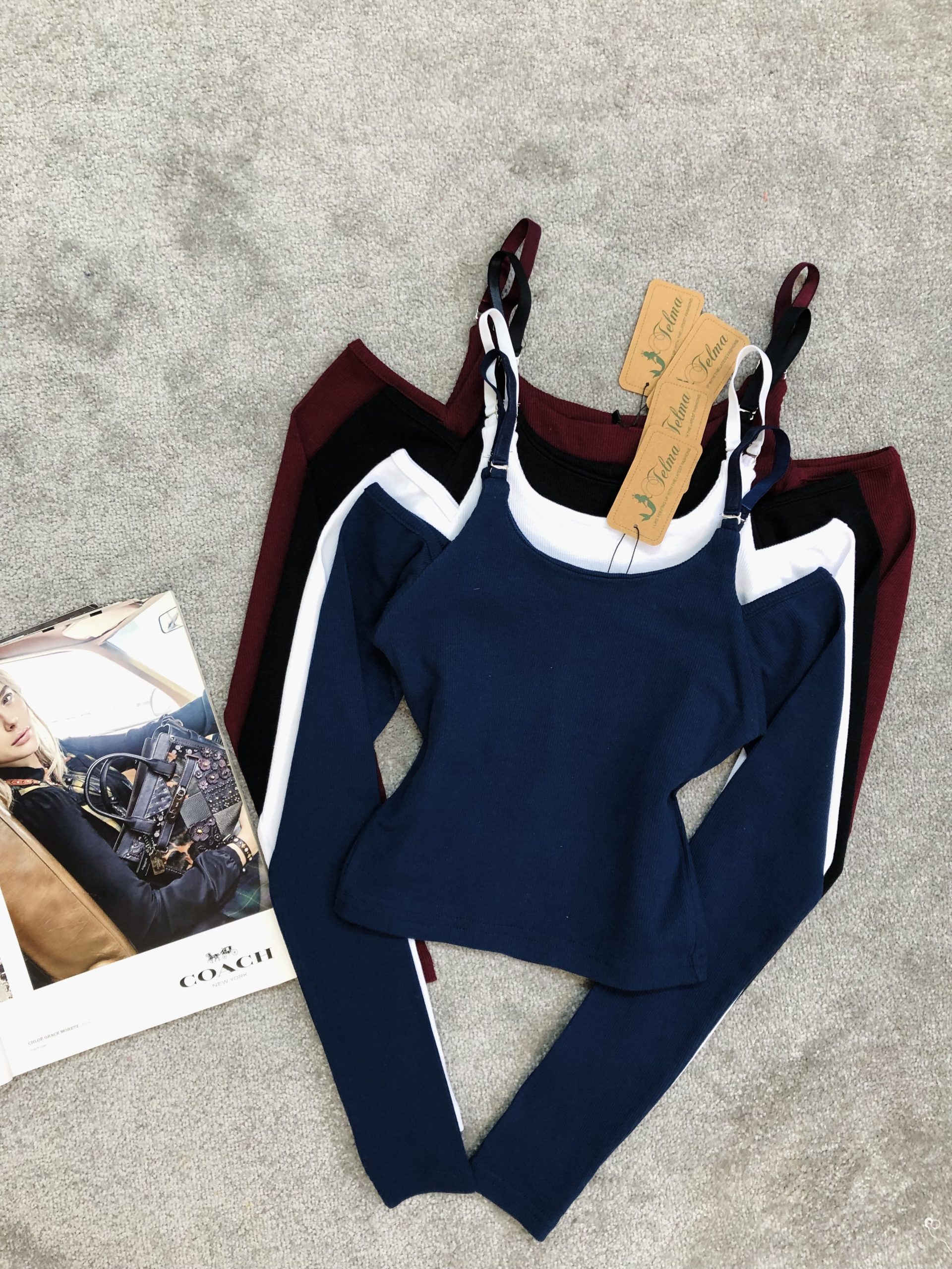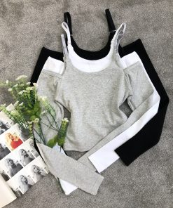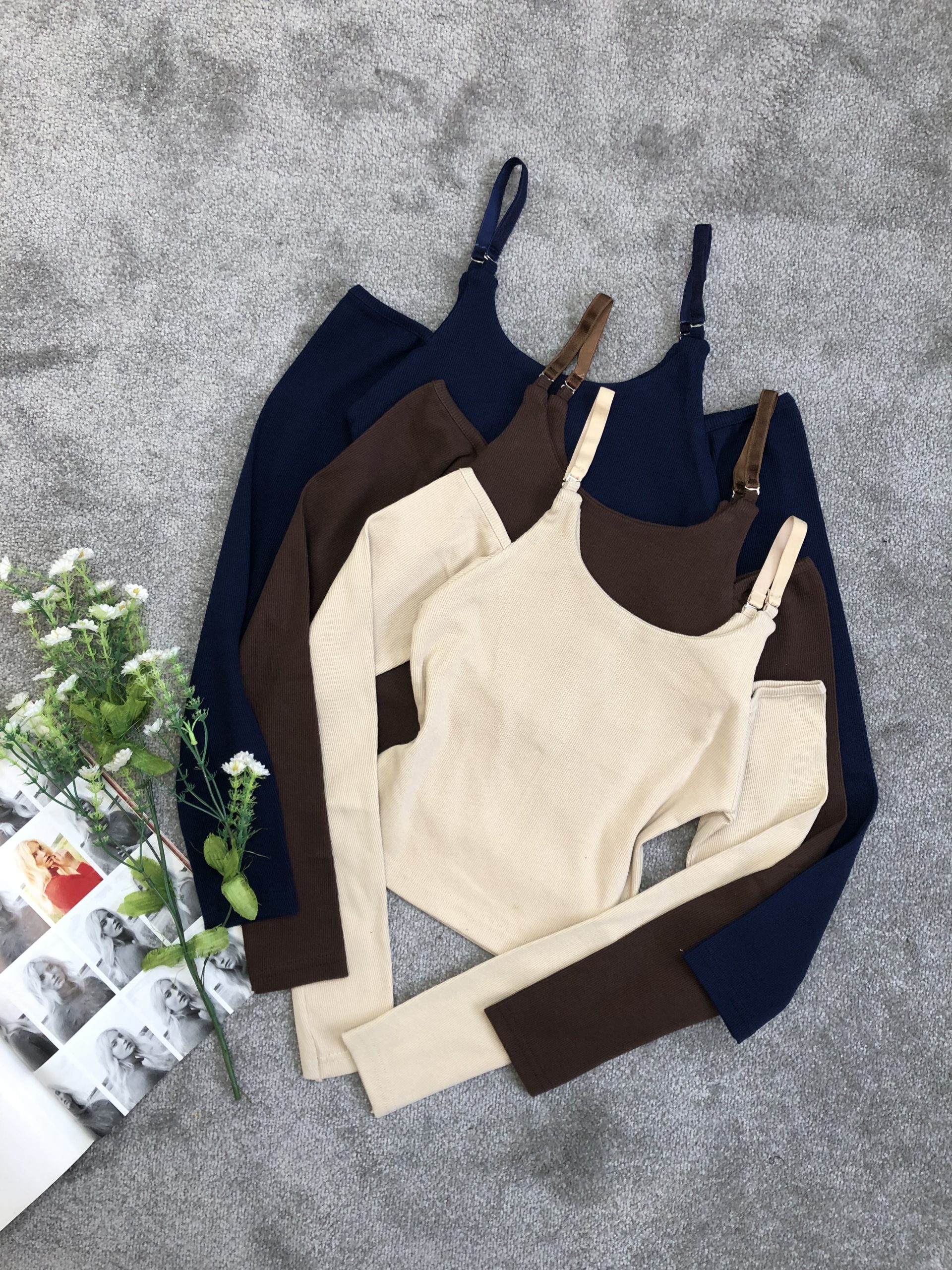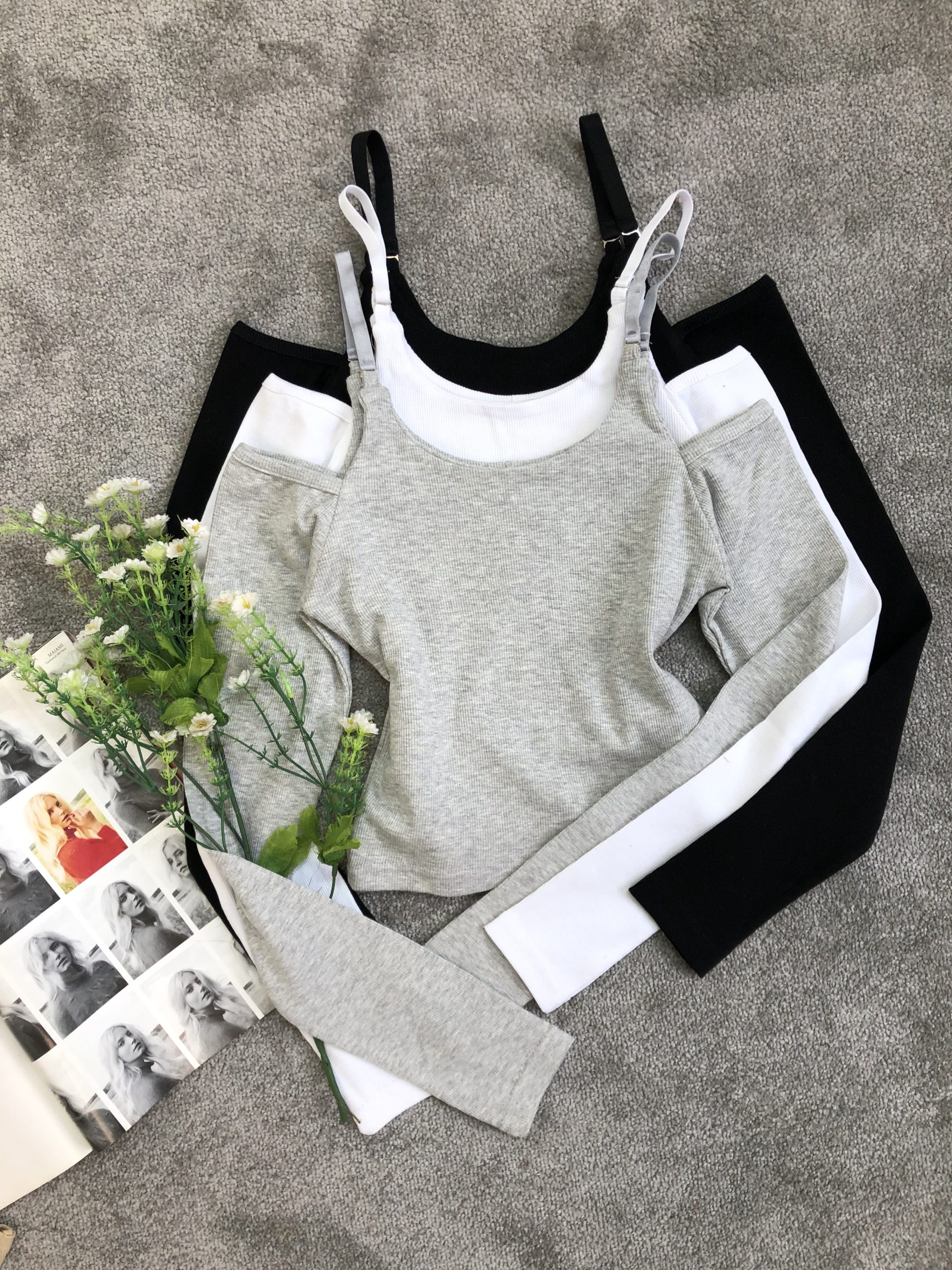 کراپ سرشونه باز استین دار بند سوتینی (3691)