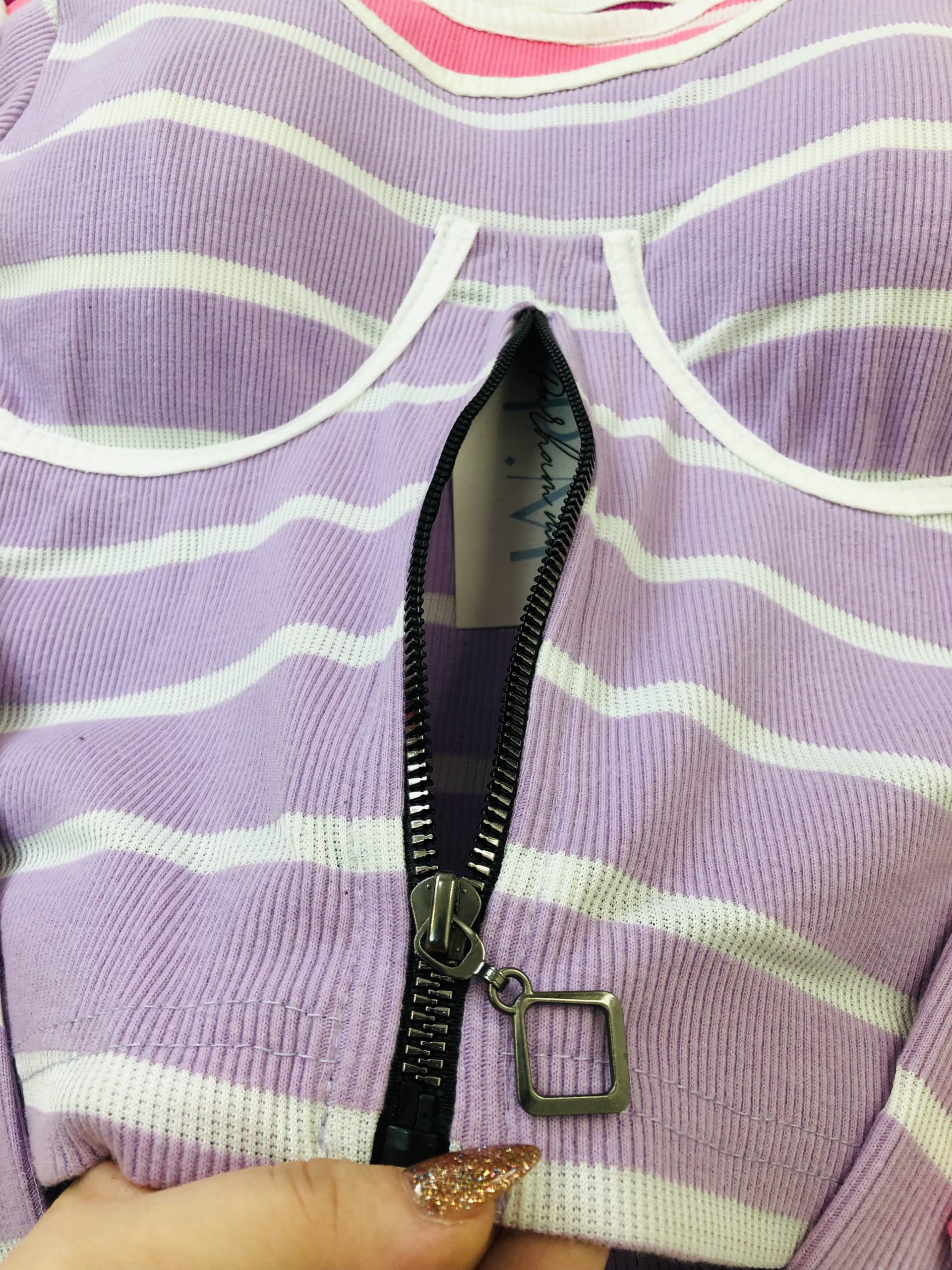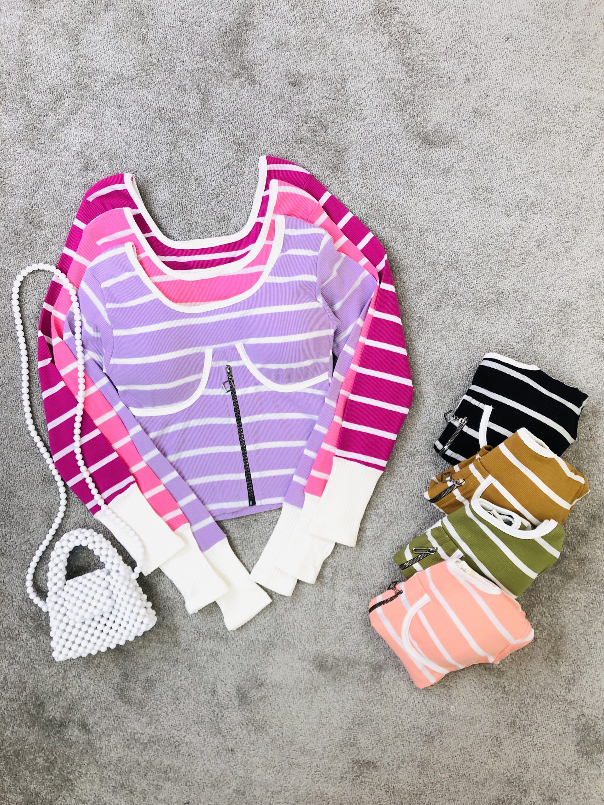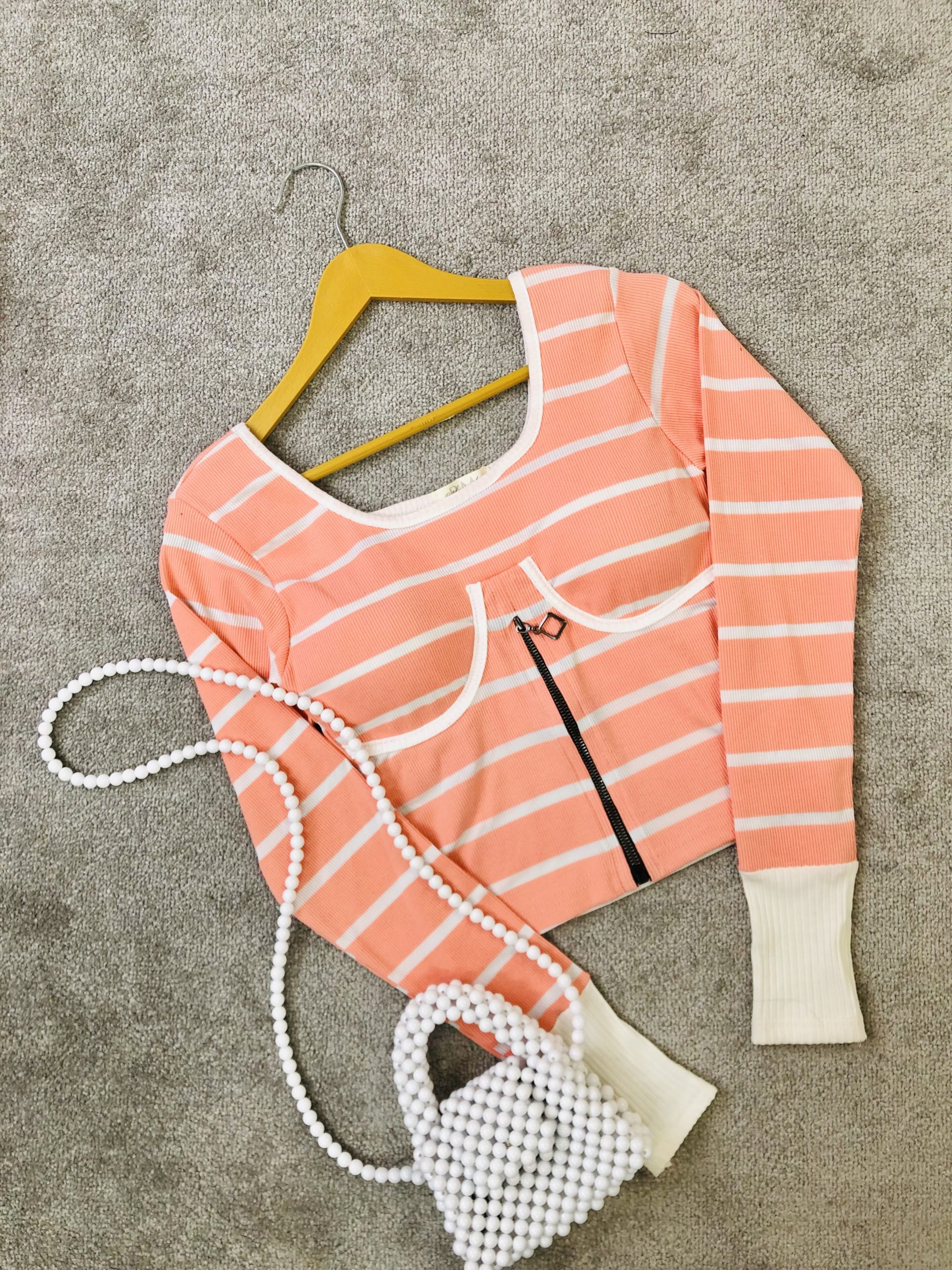 کراپ کاپدار راه راه نیم زیپ (3139)