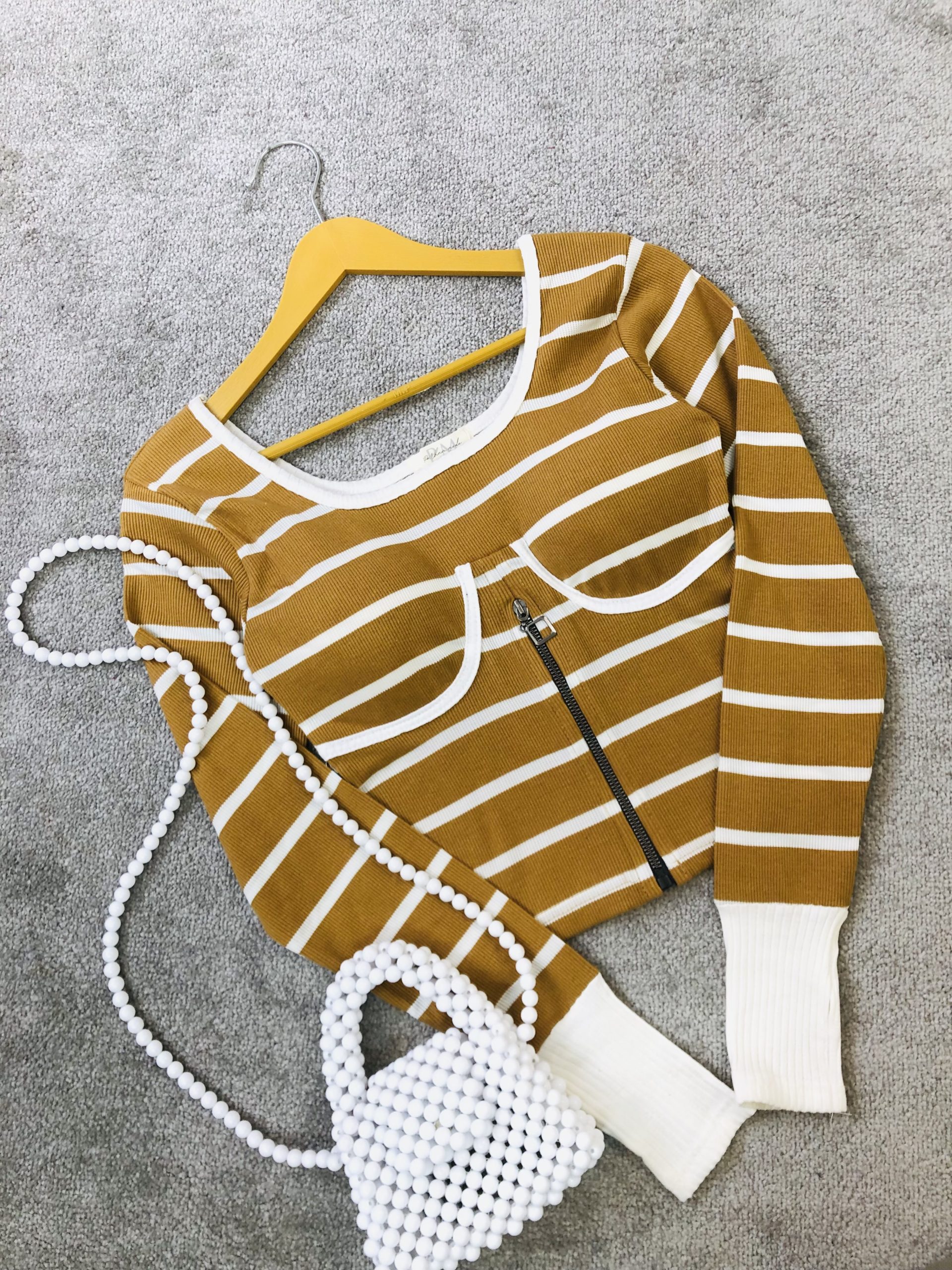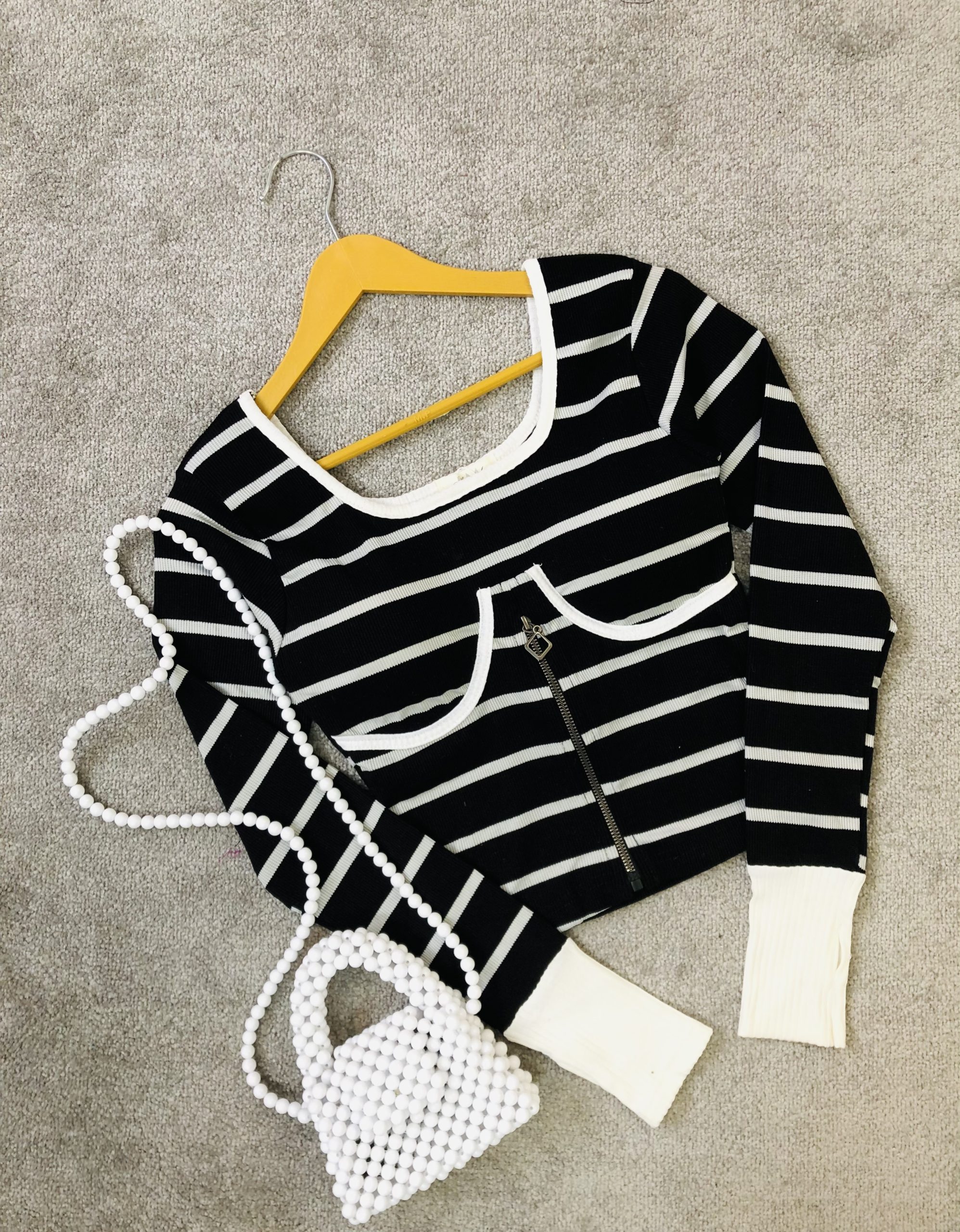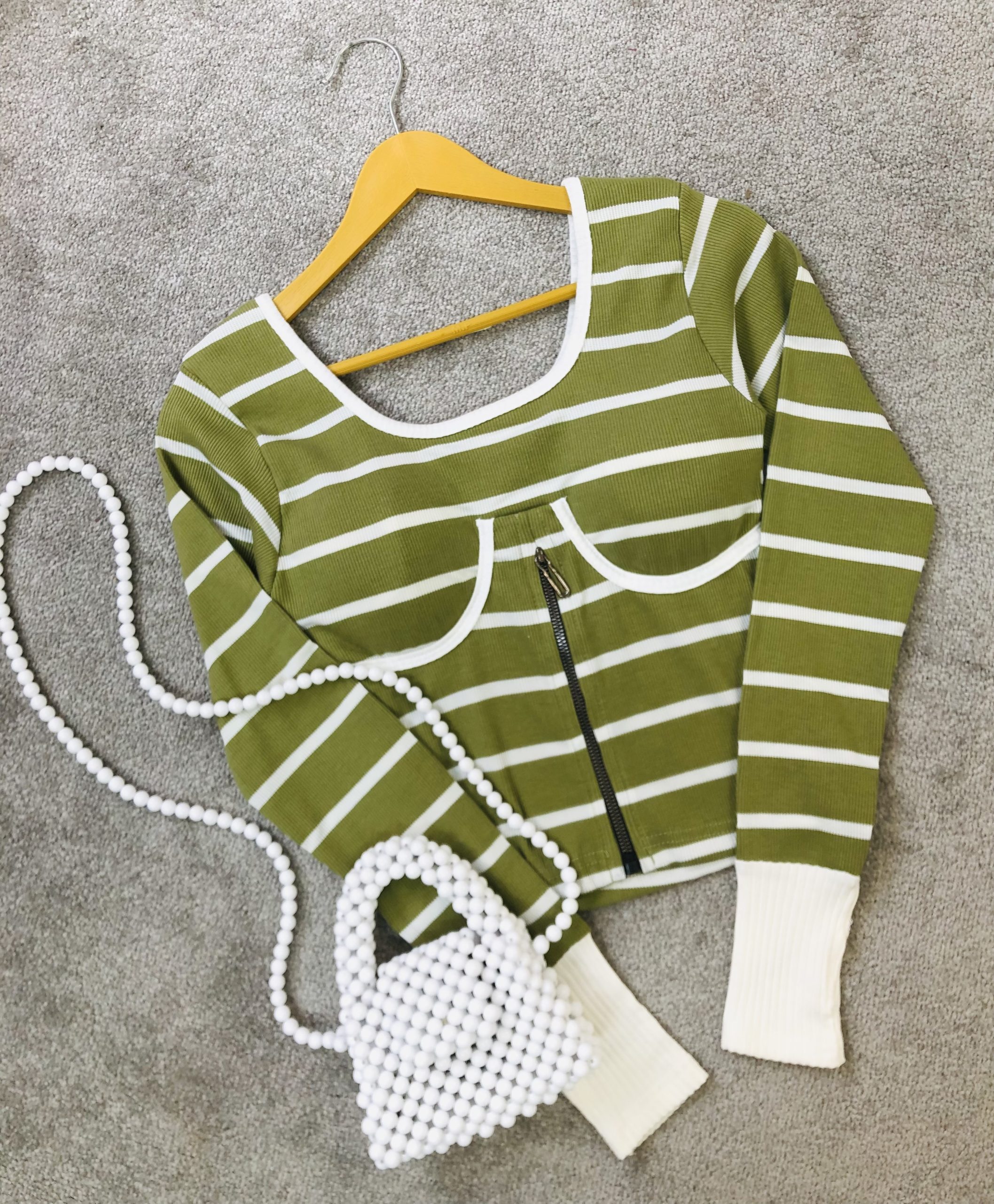 کراپ کاپدار راه راه نیم زیپ (3139)